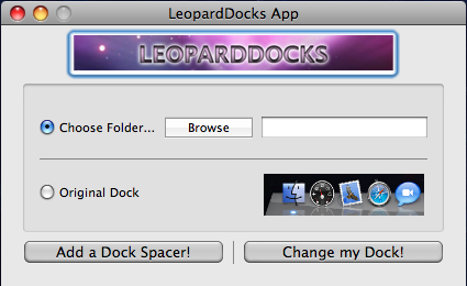- Bien, como podéis observar el programa es muy simple. Le damos clic al boton "Browse" y seleccionamos el tema que hemos descargado y luego le damos clic al botón "Change my Dock!"