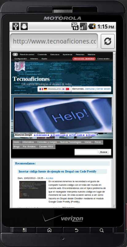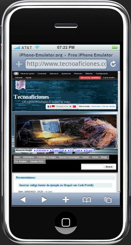 Al tratarse de una web basta con acceder a la web, una vez en la misma en la barra de menú tenemos los diferentes dispositivos disponibles, clicamos en el que deseamos y aparece el dispositivo, ahora basta con escribir nuestra dirección en la barra del navegador del dispositivo virtual, y podremos visualizar y navegar como si fuese un dispositivo real. Os dejo unas instantáneas de como se ve nuestro sitio en varios de ellos.